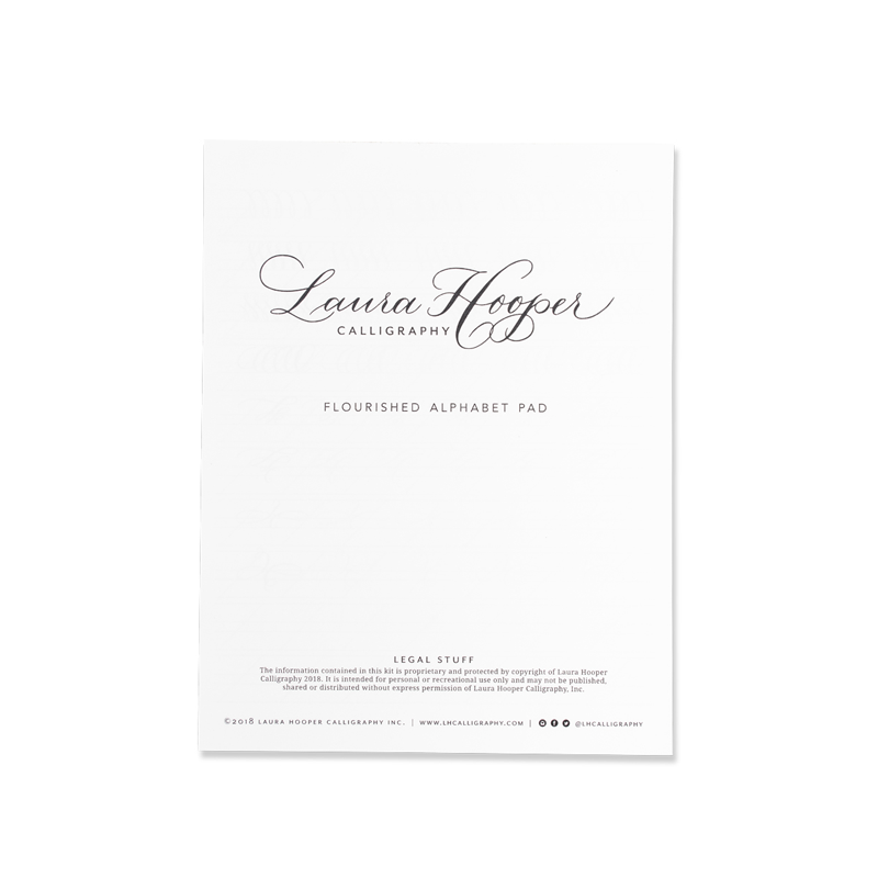 As the direct continuation to our starter kit for beginners, this course walks you through letter consistency, letter connections & two flourished alphabets. It can be purchased in conjunction with the the Calligraphy Starter Kit (as it is the next step for your continued practice) as part of the Artist Bundle!